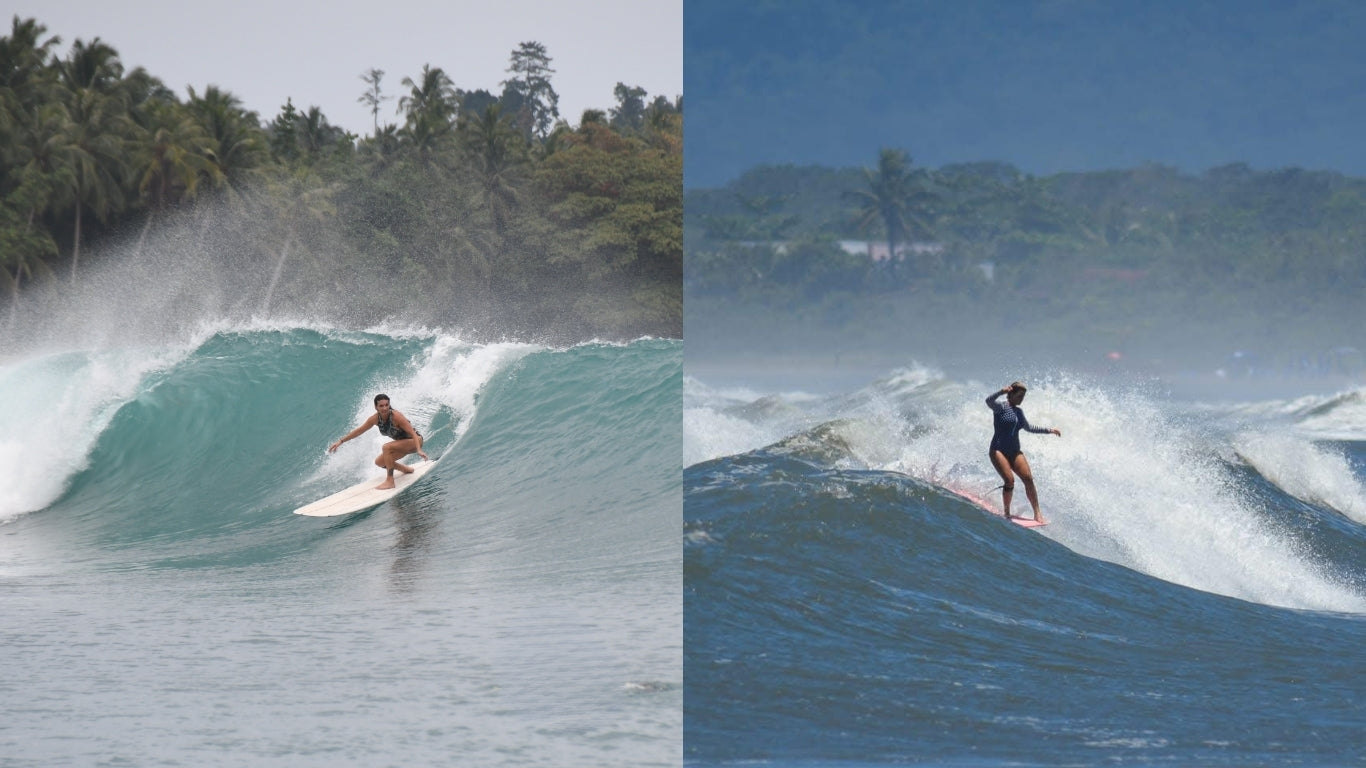 Together, Fernanda and Gabi create a safe, fun, and empowering space for women to grow their surfing, expand their comfort zone, and feel at home in perfect longboard waves.